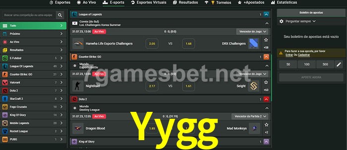O Yygg oferece uma grande seleção de opções de apostas em e-sports com probabilidades competitivas